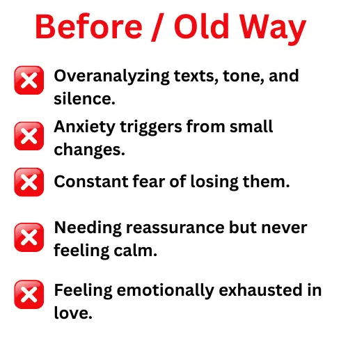 "I didn’t realize how much anxiety and overthinking were running my relationships until I read this guide. The way it explains why my brain reacts — and what to do in the moment — changed everything. I feel calmer, more secure, and way more present in love now." - Sukumar.G