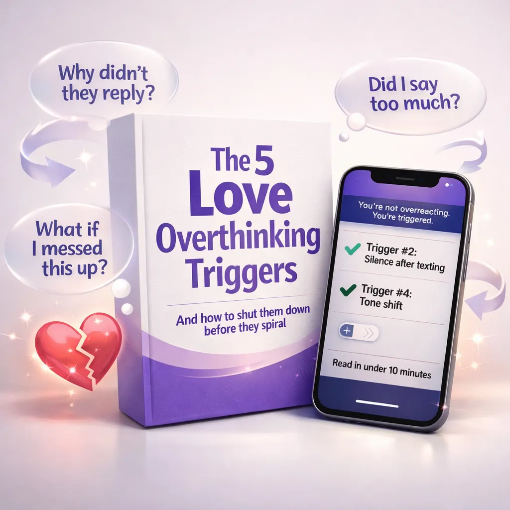 The 5 Love Overthinking Triggers Cheat-Sheet helps you instantly spot the exact moments your mind starts spiraling — and shows you what to do before anxiety takes over.