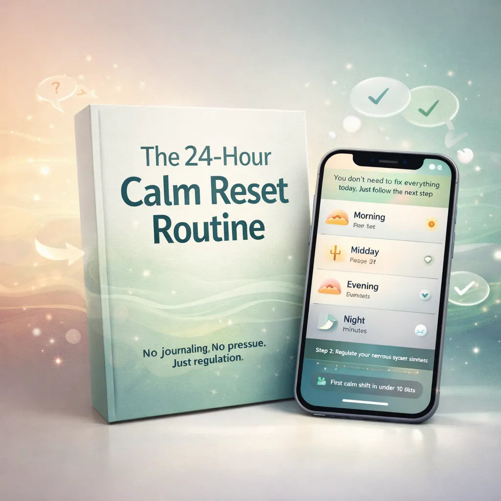 The 24-Hour Calm Reset Routine helps you quiet your mind, reset anxiety, and feel emotionally grounded within a single day — even if you’re already spiraling.