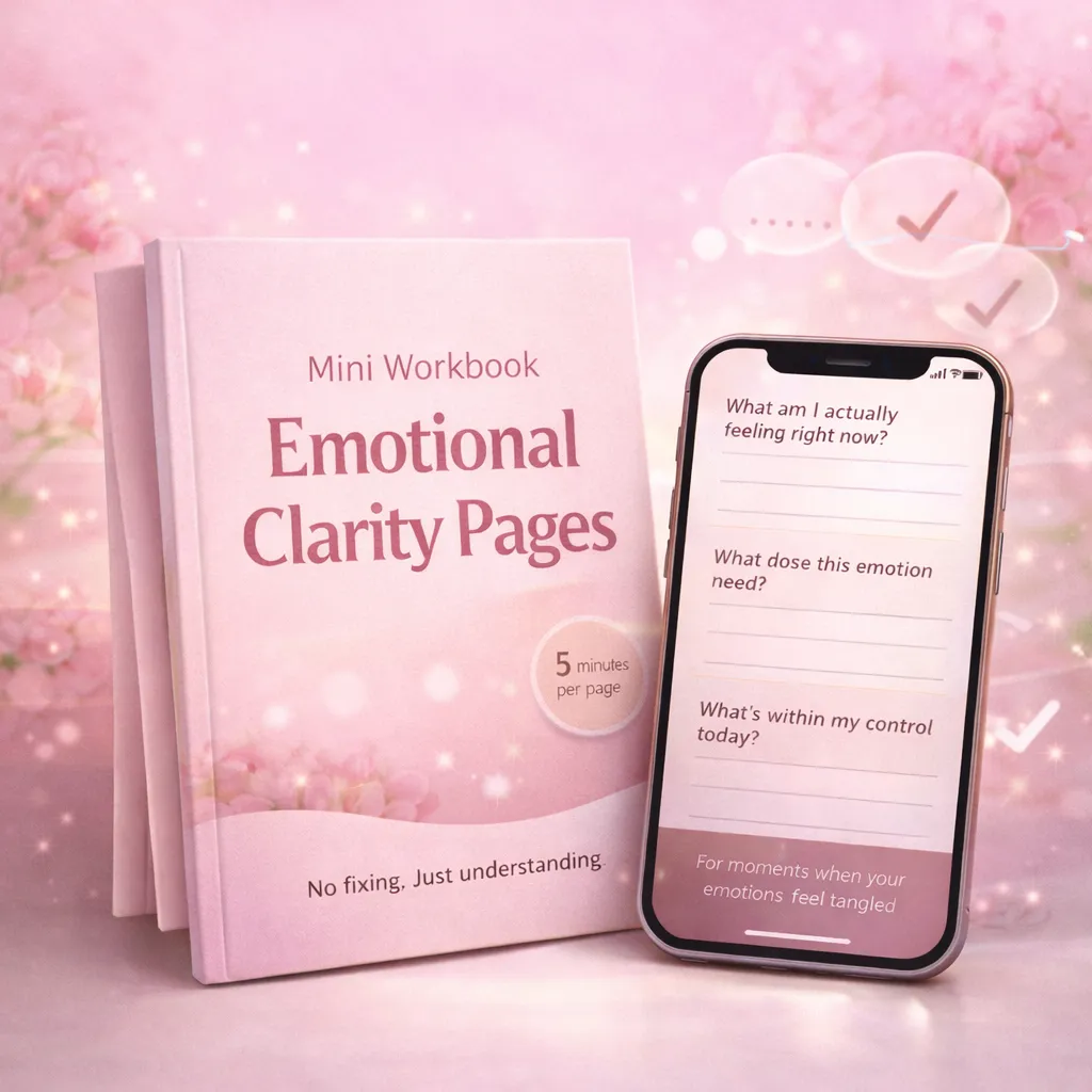 Mini Workbook: Emotional Clarity Pages helps you quickly untangle confusing emotions, quiet mental noise, and understand what you’re actually feeling — so you can respond calmly instead of spiraling.